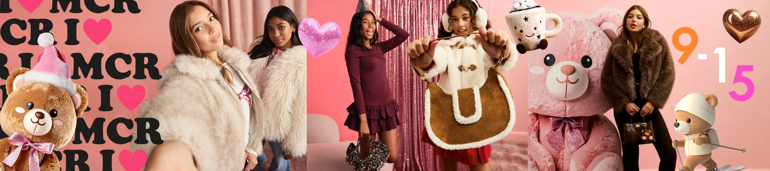 I was tasked with concepting the 915 Winter 2025 campaign, collaborating closely with the art director and copywriter to develop the overall graphic treatment that shaped the final creative. Using Adobe Firefly, I generated the 3D sticker elements that became the focal point of the campaign—bringing a young, playful energy to the visuals. The bear character evolved from the autumn campaign, this time styled with a bow and hat to evoke a festive winter feel. To complement this, the typography received a subtle glitter effect to enhance the celebratory, “party” mood of the season.